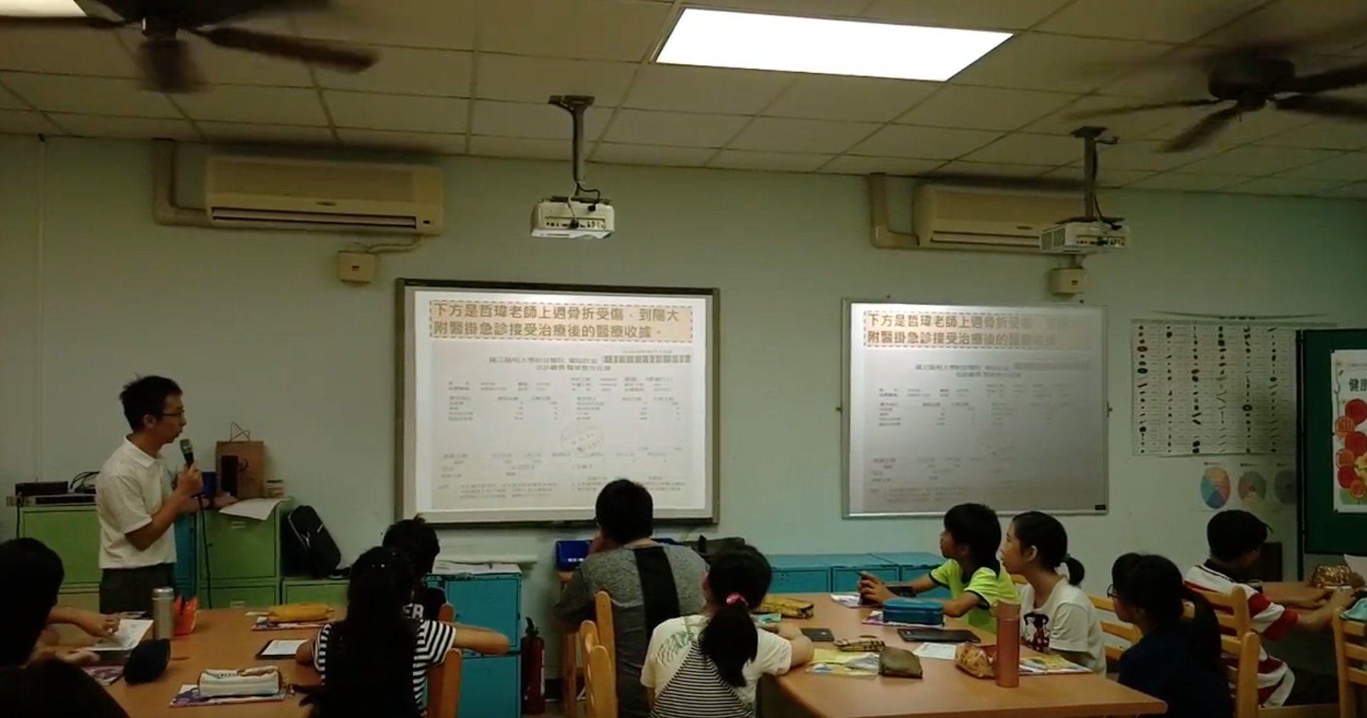 在孩子們找到健保單據怎麼判讀後,林老師,舉出了幾個問題,試圖讓孩子們解答。